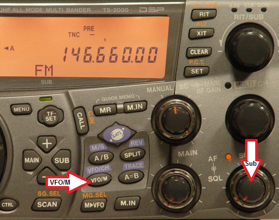 If the sub-band is turned on, you can turn it off by pressing on the sub volume knob. Pressing this will turn off the right hand frequency display, thus turning off the second receiver. Pressing the knob again will turn the sub receiver back on.